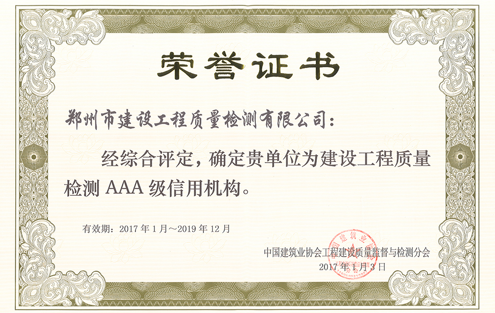 鄭州市建設(shè)工程質(zhì)量檢測(cè)有限公司前身鄭州市建設(shè)工程質(zhì)量檢測(cè)站,成立于1987年, 原隸屬于鄭州市城鄉(xiāng)建設(shè)管理委員會(huì)。2004年根據(jù)國(guó)家有關(guān)文件精神,鄭州市建設(shè)工程質(zhì)量檢測(cè)站改制更名為鄭州市建設(shè)工程質(zhì)量檢測(cè)有限公司(以下簡(jiǎn)稱(chēng)公司),注冊(cè)資本1000萬(wàn)元人民幣,獨(dú)立法人企業(yè),主要從事建設(shè)工程質(zhì)量檢測(cè)、技術(shù)咨詢(xún)業(yè)務(wù)。公司為河南省質(zhì)量技術(shù)監(jiān)督局資質(zhì)認(rèn)定(計(jì)量認(rèn)證)合格單位及中國(guó)合格評(píng)定國(guó)家認(rèn)可委員會(huì)實(shí)驗(yàn)室認(rèn)可單位,是中國(guó)認(rèn)可國(guó)際互認(rèn)質(zhì)量體系、職業(yè)健康安全管理體系、環(huán)境管理體系認(rèn)證注冊(cè)資格單位,具有河南省建設(shè)廳核發(fā)的建設(shè)工程質(zhì)量檢測(cè)資質(zhì),是第...