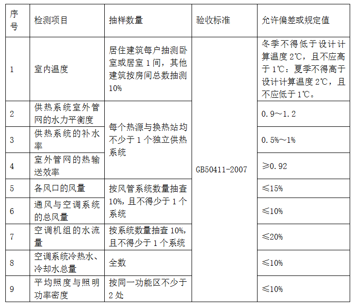系統(tǒng)節(jié)能性能檢測的項目和抽樣數(shù)量也可以在工程合同中約定,必要時可增加其他檢測項目,但合同中約定的檢測項目和抽樣數(shù)量不應(yīng)低于GB50411-2007標(biāo)準(zhǔn)的規(guī)定。