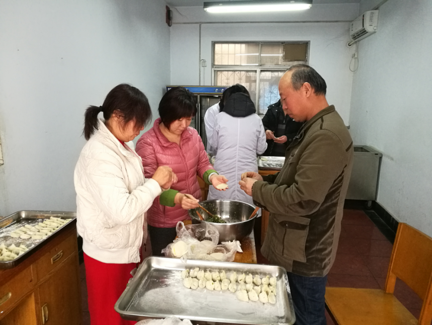 在冬至來臨的前幾天,公司王春敏副總經(jīng)理特意囑咐食堂,讓公司員工一定吃上冬至水餃。食堂負(fù)責(zé)人侯景梅為了讓員工們品嘗到美味可口的餃子,提前一天采購了韭菜、大蔥等食料,組織廚師和幫廚把菜仔細(xì)摘洗、晾干。12月21日,食堂一早購入豬肉,為了保證餃子的質(zhì)量及口味,由廚師負(fù)責(zé)餃子餡的整個(gè)調(diào)制流程,食堂全體員工也早早地忙開了,切菜、配料、備盤子等,由于食堂工作人員少,為了使員工能在中午按時(shí)吃上水餃,王總安排工作不緊張的部門提供支援,環(huán)境部、結(jié)構(gòu)部、辦公室對(duì)當(dāng)天工作做了安排和調(diào)整,組織胡巧玲、楊巧玲、岳紅、王慶、閆保亮、冉金榮去食堂幫廚,大家分工明確、井然有序、忙而不亂,兩個(gè)小時(shí)后,約2000個(gè)韭菜大肉餡、香噴噴的餃子就包好了。當(dāng)一碗碗熱騰騰的水餃遞到員工的手里,頓時(shí)一種幸福洋溢在每個(gè)人的臉龐上。