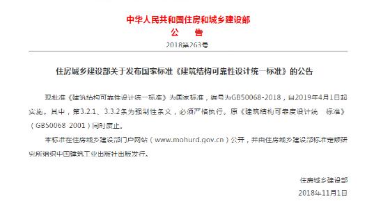 摘要:住房城鄉(xiāng)建設(shè)部發(fā)布了國家標(biāo)準(zhǔn)《建筑結(jié)構(gòu)可靠性設(shè)計統(tǒng)一標(biāo)準(zhǔn)》,編號為GB50068-2018,自2019年4月1日起實施。巨變!分項系數(shù)提高:恒1.3,活1.5!2019年4月1日起執(zhí)行!