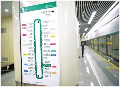 地鐵5號線高峰時段最小行車間隔為5分32秒,平峰時段行車間隔為6分32秒,開通初期的運營時間為早6點至晚上10點。5號線的票價機制與1號線、2號線相同。本版圖片由記者張琮攝影