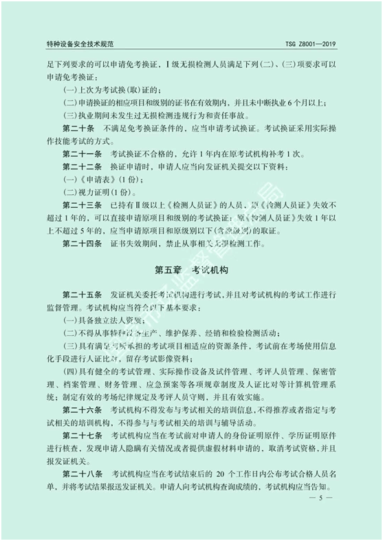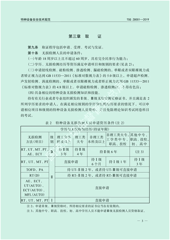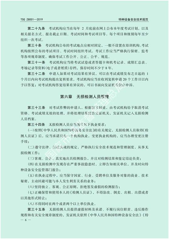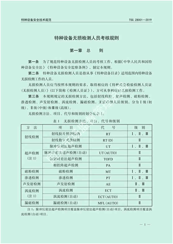 特種設備無損檢測人員考核規(guī)則(TSG Z8001-2019)部分截圖如下所示: