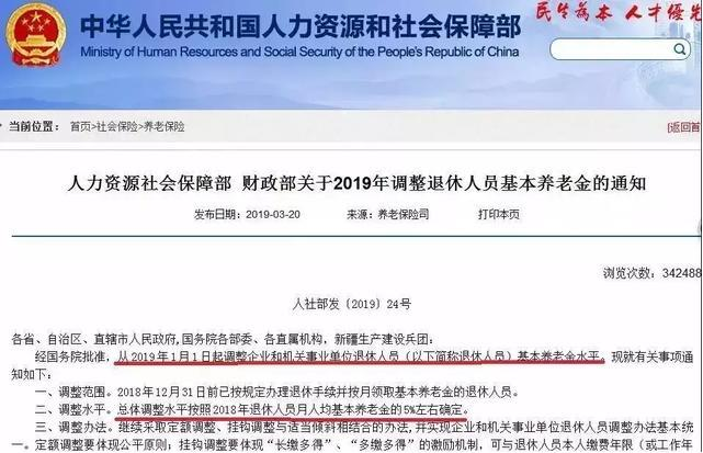 3月20日,人力資源社會保障部、財政部發(fā)布《關(guān)于2019年調(diào)整退休人員基本養(yǎng)老金的通知》,確定了: