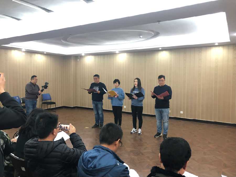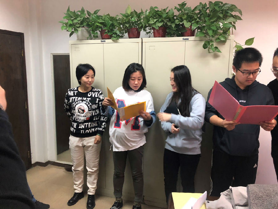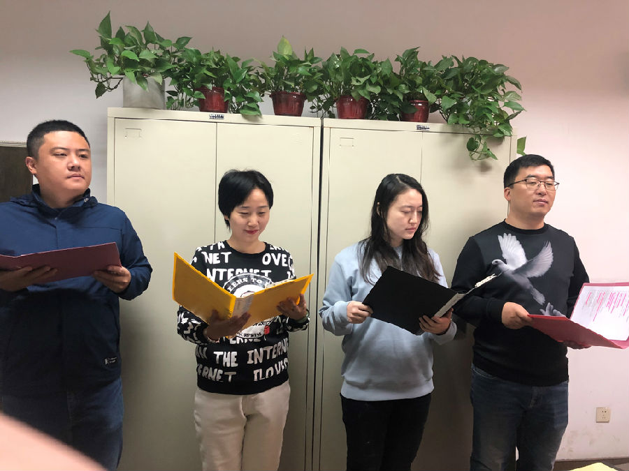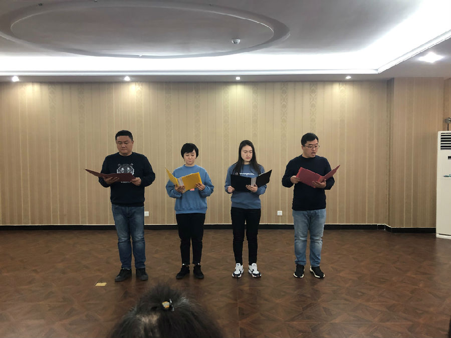 冬日的寒風(fēng)絲毫不能影響大家對公司年會的期盼和熱情,為了密切相互之間的配合,把更加精彩的節(jié)目呈現(xiàn)在公司領(lǐng)導(dǎo)和同事們的面前,工作之余,部門員工們主動放棄休息時間,積極刻苦的對待每次排練,未參與兩個節(jié)目表演的同事也并沒有置身事外,積極的為參加表演的同事提出建議,幫助他們熟悉臺詞,調(diào)整表演時的肢體動作,尋找合適的朗誦背景音樂??芍^是全員發(fā)動齊上陣,凝心聚力創(chuàng)精品!