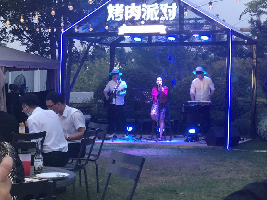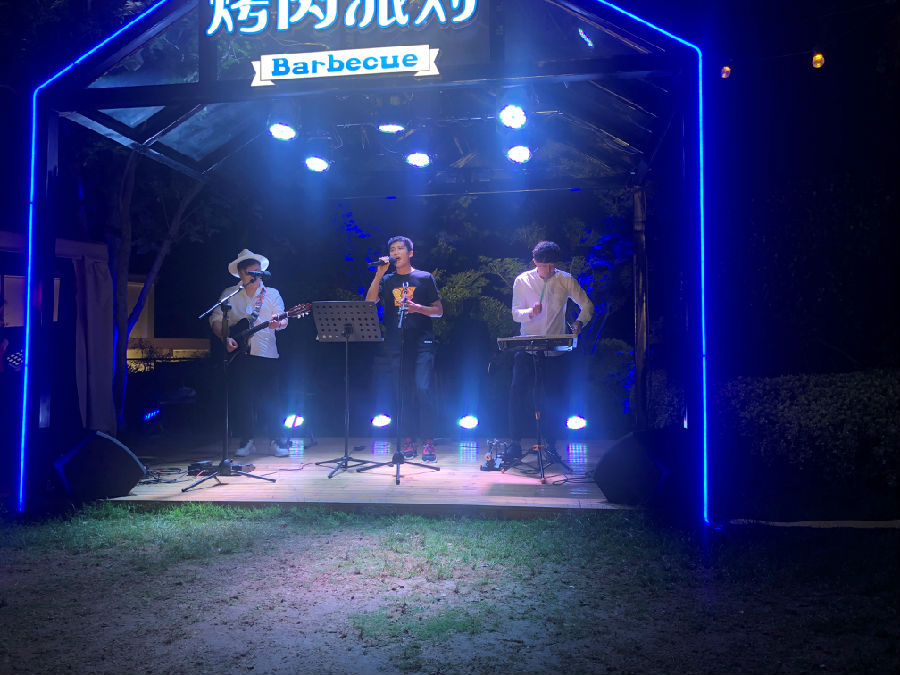 陳總講話結(jié)束后,團(tuán)建活動(dòng)的烤肉派對(duì)環(huán)節(jié)開始了,在熱情似火的盛夏七月,唯烤肉與美酒不可辜負(fù),在一天辛勤的工作后,伴隨著現(xiàn)場(chǎng)駐唱歌手愜意的歌聲享受一頓烤肉大餐,實(shí)屬人間一大快事,大家享受美食,分享快樂,一天的疲憊都被拋之腦后。