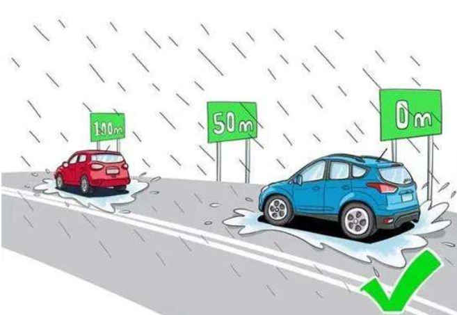 下雨天視線受阻,對(duì)于兩車距離判斷的就沒(méi)有平時(shí)準(zhǔn)確,駕駛員一定要適當(dāng)?shù)慕档退俣龋颓昂筌嚤3忠欢ǖ陌踩嚯x。而且一定要遠(yuǎn)離大車,因?yàn)橛行┞访嬗蟹e水的情況下,大車可以過(guò),小車未必能通過(guò),所以一定要慎行。