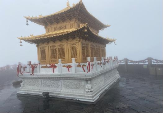 第三站到達(dá)的是玉皇頂。乘觀光車到達(dá)換乘點(diǎn)后,一行人乘纜車上山,后又花一個(gè)多小時(shí)爬上一千多米的高山,由于第一天太過(guò)疲憊,到達(dá)飛來(lái)石時(shí),一行人已經(jīng)氣力耗盡,但仍堅(jiān)持到底,利用最后的一絲力氣爬上了最后幾個(gè)臺(tái)階,終于登上了伏牛山三大主峰之一,海拔2216米的玉皇頂。于峰頂眺云海,蒸騰的云霧似海邊之云,有水汽洗濯,又似天外之云,無(wú)塵埃污染,猶如置身人間仙境。后大家一起焚香祈禱,拜見玉帝。后掛了全家福鎖,這次的白云山之行也到了尾聲。