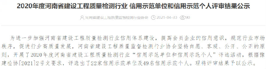 喜訊!我司陳麗、李俊濤、高鵬榮獲2020年河南省建設(shè)工程質(zhì)量檢測(cè)行業(yè)信用示范個(gè)人