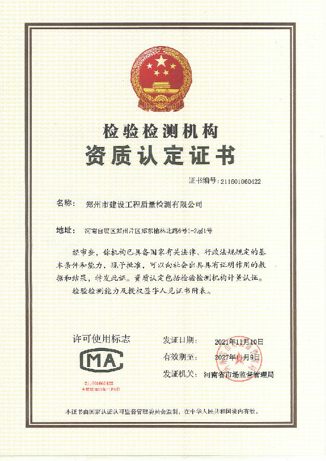 您好,歡迎來到鄭州市建設(shè)工程質(zhì)量檢測有限公司!